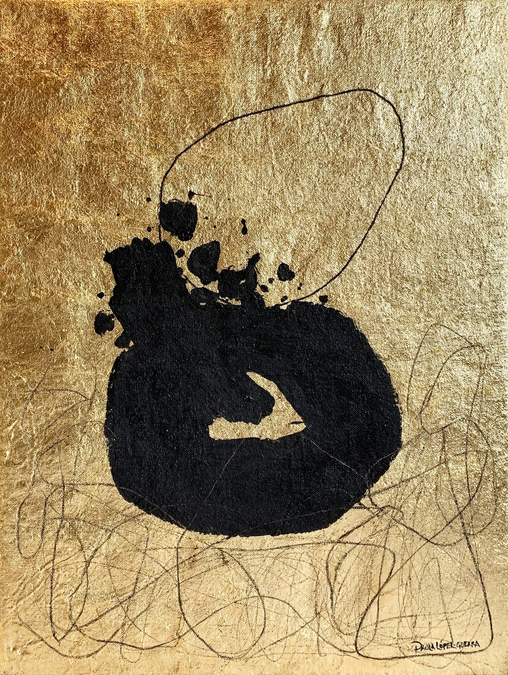 Jute, gold leaf, pigments, acrylic, charcoal.